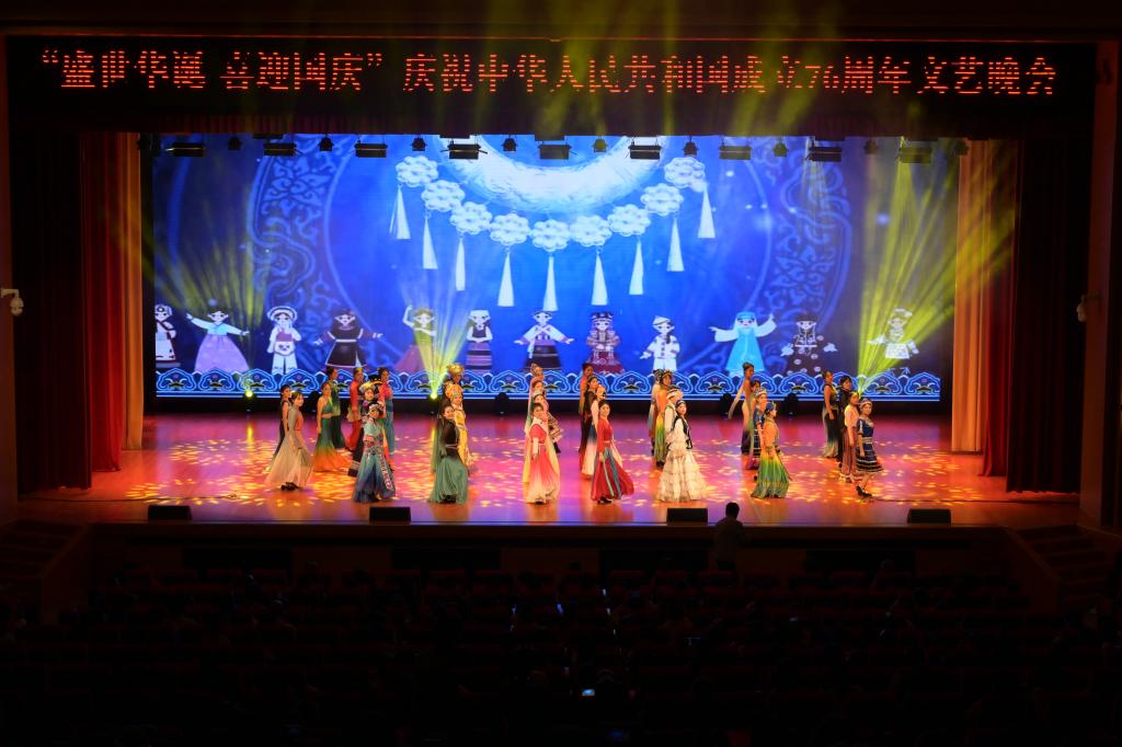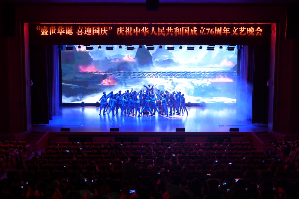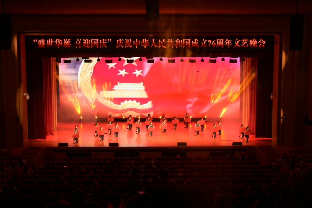 9月29日晚,我校举办“盛世华诞 喜迎国庆”庆祝中华人民共和国成立76周年文艺晚会。党委书记向君,党委副书记、校长李艳红等学校领导,县委常委、宣传部部长杨江林,县人大常委会副主任牛雪洁、副县长罗娟、政协副主席李小山和1200余名师生代表共同观看了晚会。