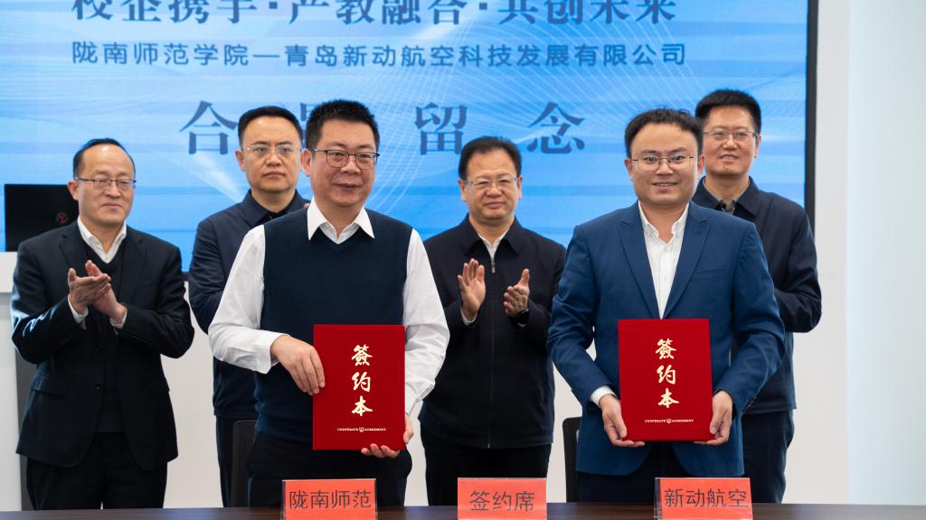 向君强调,此次陇南师范学院与青岛新动航空的合作,是陇南与胶州产学研深度融合、东西部协作共赢的生动实践。他表示,双方将以共建“低空经济产业研究院”为核心载体,聚焦低空运维、旅游开发及应急救援等领域,着力构建“技术研发-人才培养-成果转化”的一体化闭环。希望以此次签约为起点,与胶州在低空经济发展、关键技术研发、成果转化与复合型人才培养等方面进一步深化合作,推动合作向有深度、有广度、有温度的方向发展,共同打造辐射西北的低空经济服务平台,为两地高质量发展注入新动能。