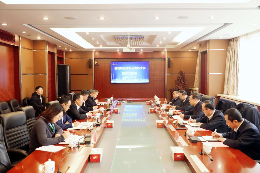 11月17日下午,我校党委书记向君、副校长何新征一行赴青岛大学调研交流。青岛大学党委书记胡金焱会见来宾,副校长刘恩贤主持座谈会并陪同调研。