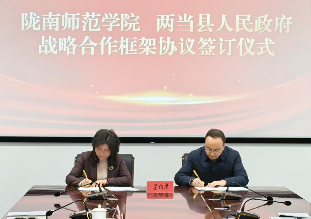 11月27日,我校与两当县人民政府战略合作框架协议签署仪式在两当县干部学院会议室举行。学校校长李艳红,两当县委副书记、县长李海龙出席仪式。