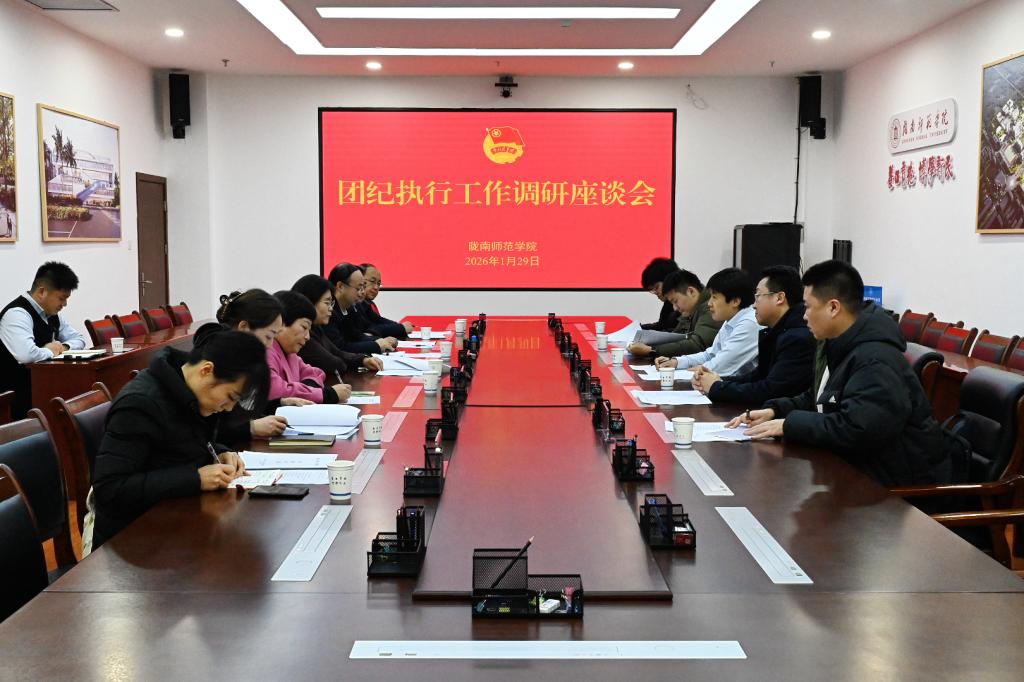 1月29日,团中央组织部副部长张毅、团甘肃省委副书记董开鹏来我校调研共青团工作,并召开团纪执行工作座谈会。党委副书记、校长李艳红,团陇南市委书记任静参加了调研活动。