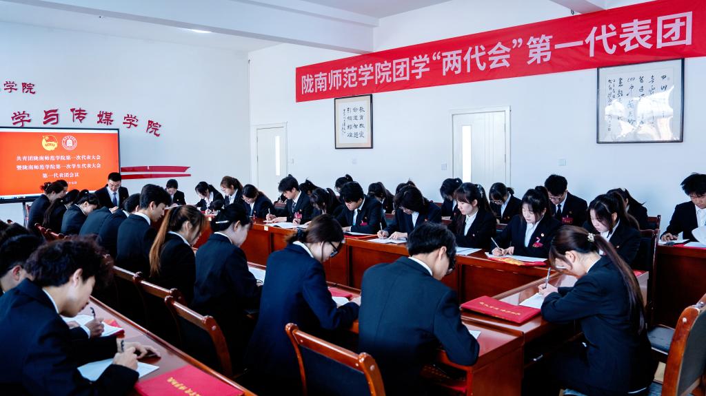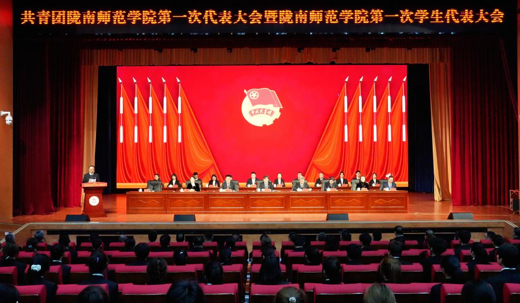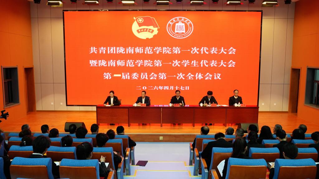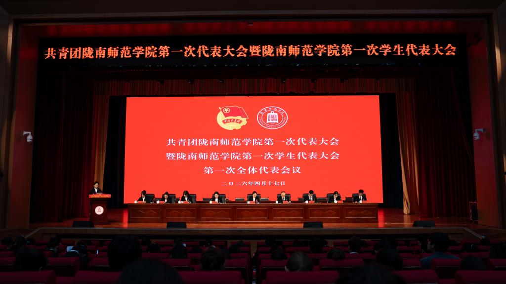 4月16日至17日,中国共产主义青年团陇南师范学院第一次代表大会和陇南师范学院第一次学生代表大会顺利召开。团省委副书记赵才让、西北师范大学团委书记韩璐、天水师范大学团委书记刘颖、共青团陇南市委副书记马灵讷,学校党委委员、纪委书记、监察专员郭省军,党委委员、副校长李开明,党委委员李杰,学校相关职能部门负责人、各学院党总支书记、团代会、学代会正式代表、师生代表共300余人参加了开幕式。党委委员石明主持开幕式。