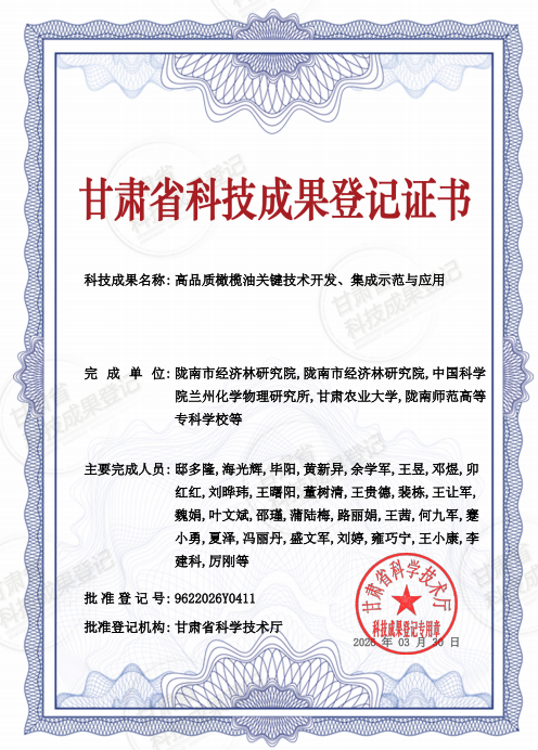 近日,我校参与的甘肃省科技重大专项——“高品质橄榄油关键技术开发、集成示范与应用”项目,顺利通过甘肃省科技厅组织的专家综合绩效评价,圆满完成结题验收及成果登记工作。