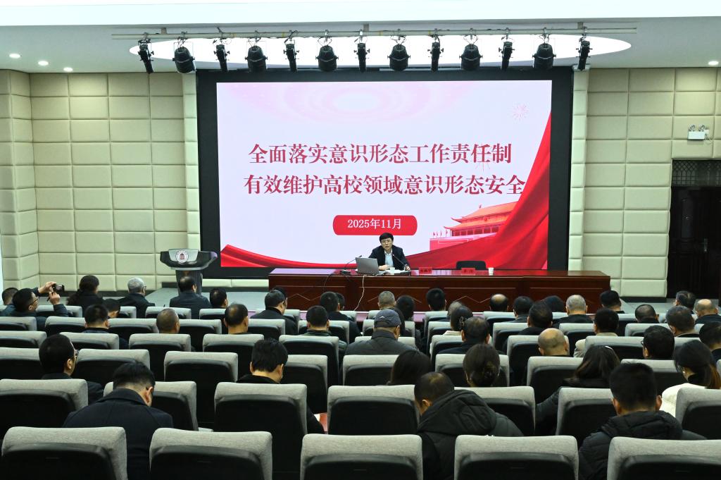 整场报告内容翔实、案例丰富,不仅是一次精准的业务指导,更是一次深刻的思想动员,为全面落实意识形态工作责任制、维护校园和谐稳定凝聚了共识、夯实了基础。大家纷纷表示,将认真贯彻落实报告精神,紧密结合工作实际,扎实做好各领域意识形态风险防范,切实肩负起维护高校意识形态安全的政治责任,为学校事业高质量发展提供坚强保障。(李 曼)