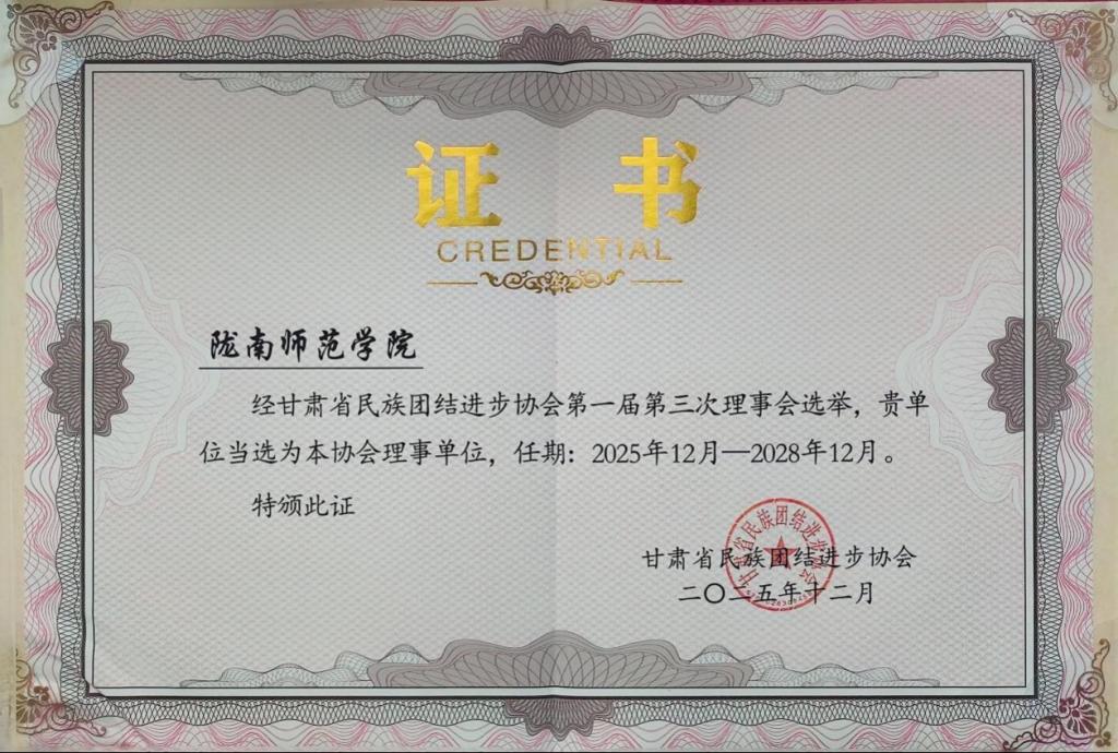 12月30日,甘肃省民族团结进步协会一届二次会员代表大会暨一届三次理事会议在兰州召开。经甘肃省民族团结进步协会第一届第三次理事会选举,陇南师范学院当选为本协会理事单位。