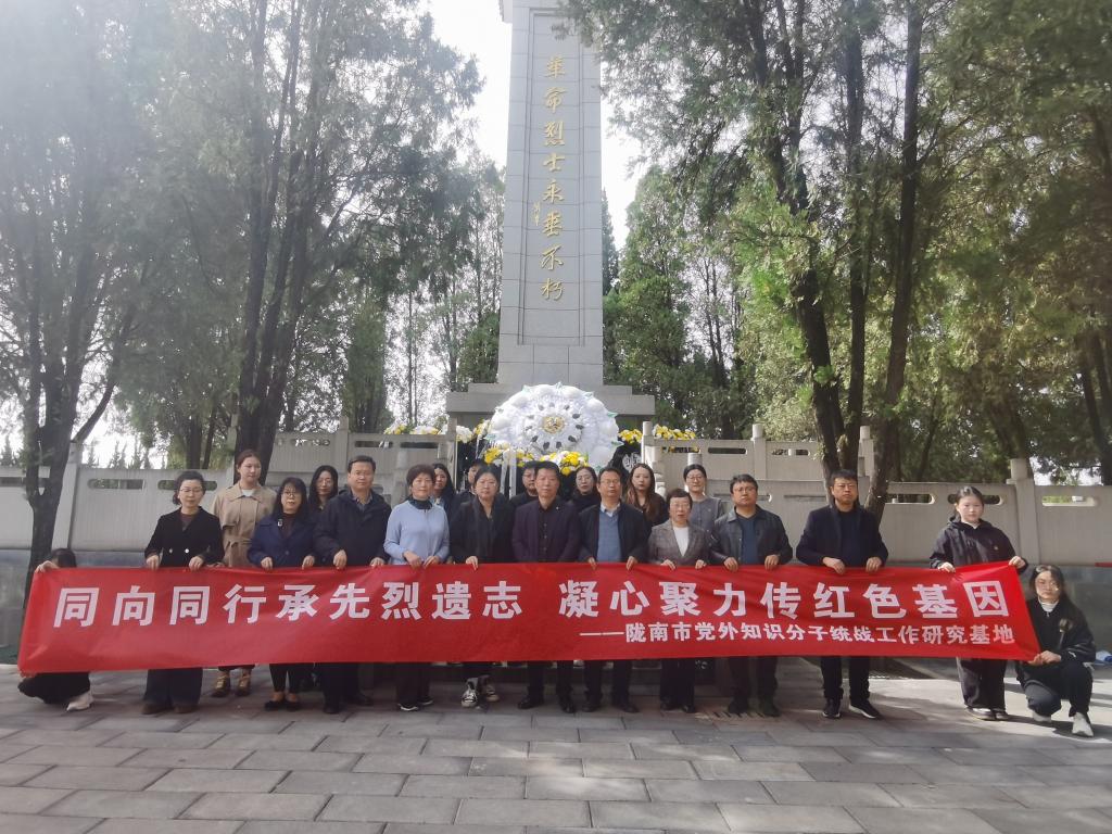 4月3日,陇南市党外知识分子统战工作研究基地前往成县革命烈士纪念碑,缅怀革命先烈,开展“同向同行承先烈遗志 凝心聚力传红色基因”清明祭扫活动。基地部分专家,学校各民主党派、无党派人士、留学归国教师代表20余人参加了祭扫活动。
