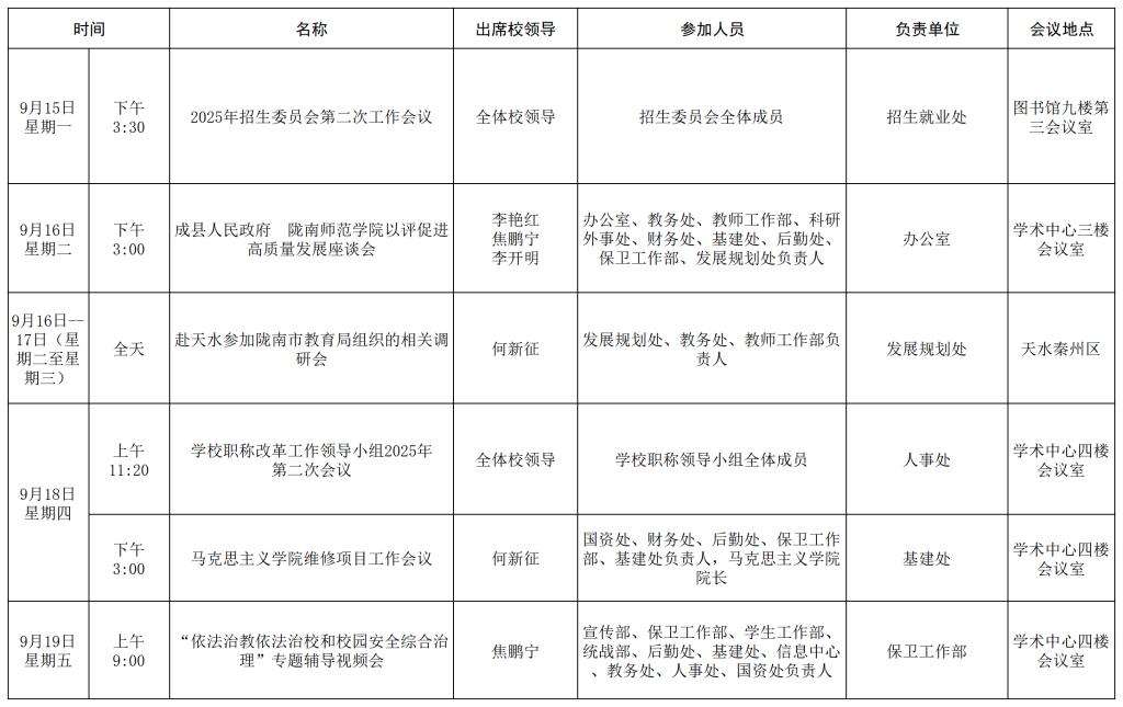 下一条:陇南师范学院2025—2026学年第一学期第二周重要会议及校领导活动安排