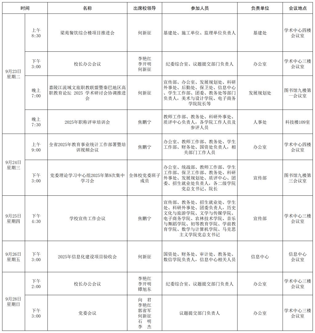 下一条:陇南师范学院2025—2026学年第一学期第三周重要会议及校领导活动安排