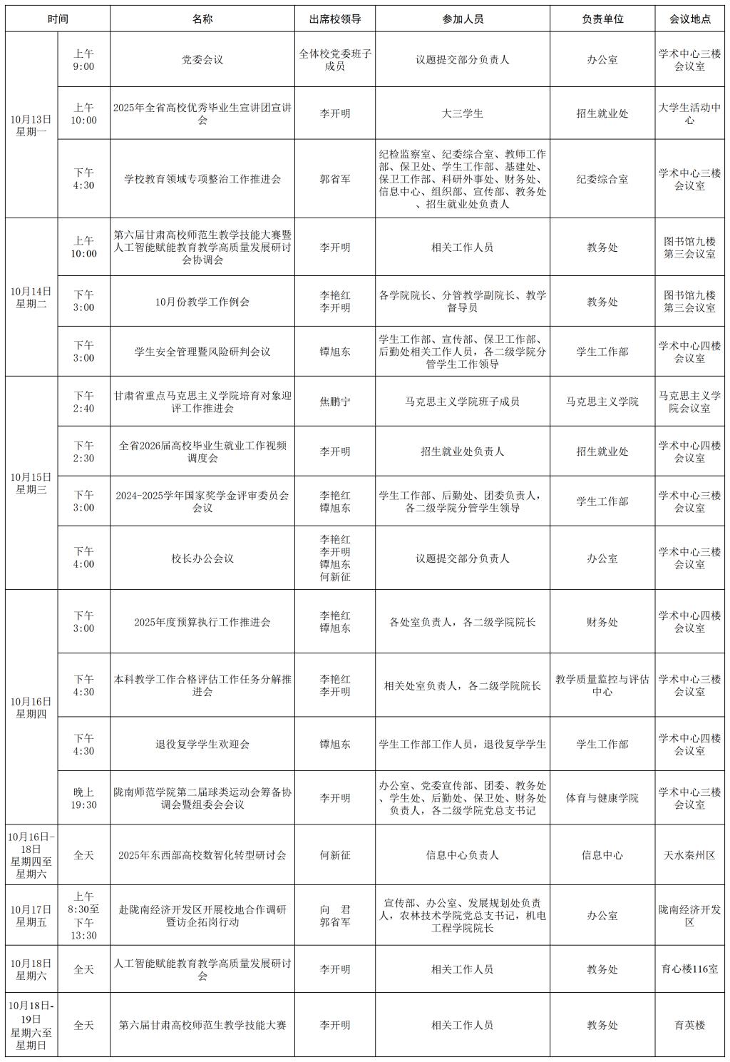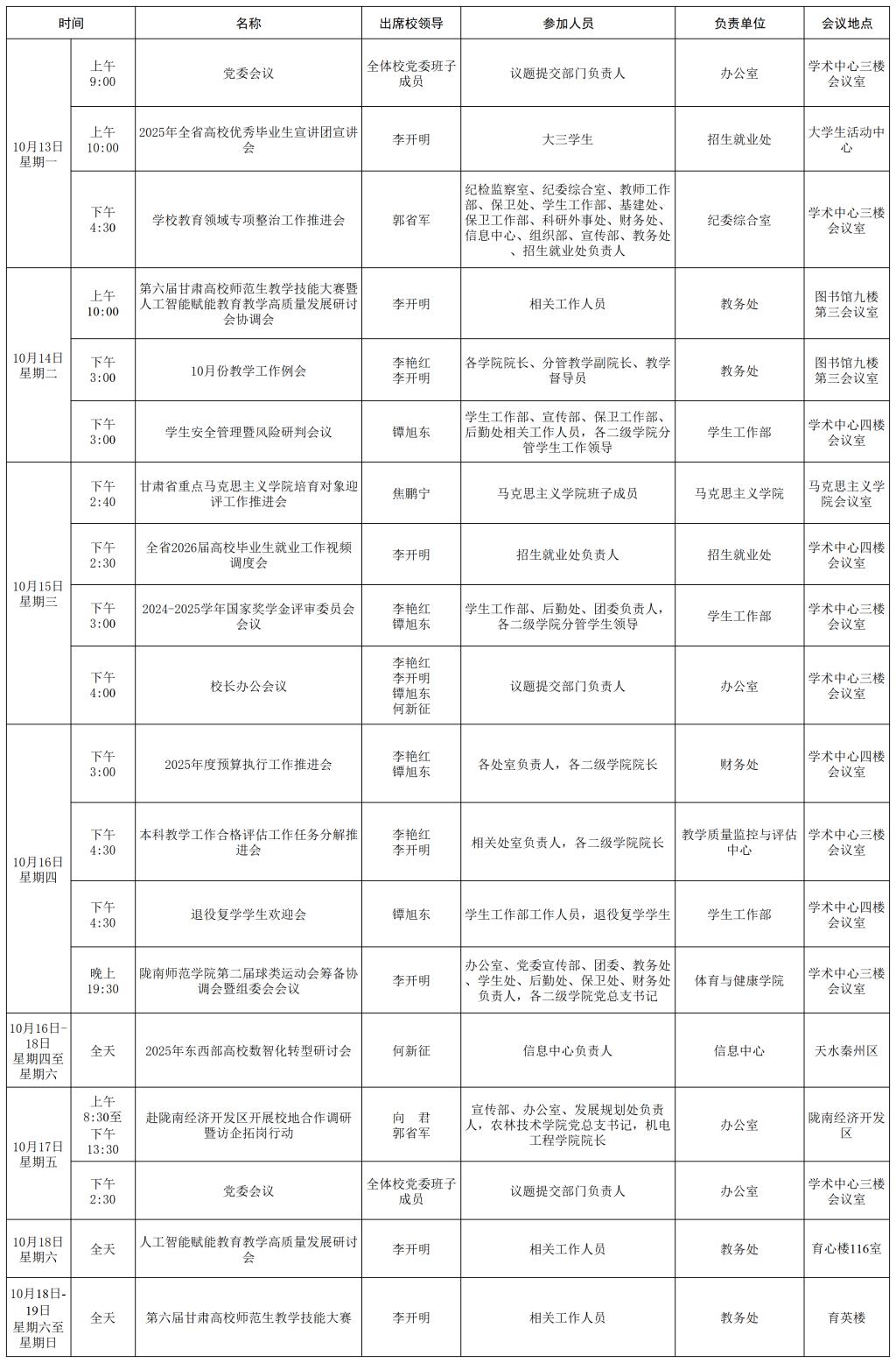 下一条:陇南师范学院2025—2026学年第一学期第六周重要会议及校领导活动安排
