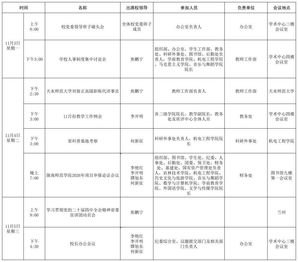下一条:陇南师范学院2025—2026学年第一学期第九周重要会议及校领导活动安排