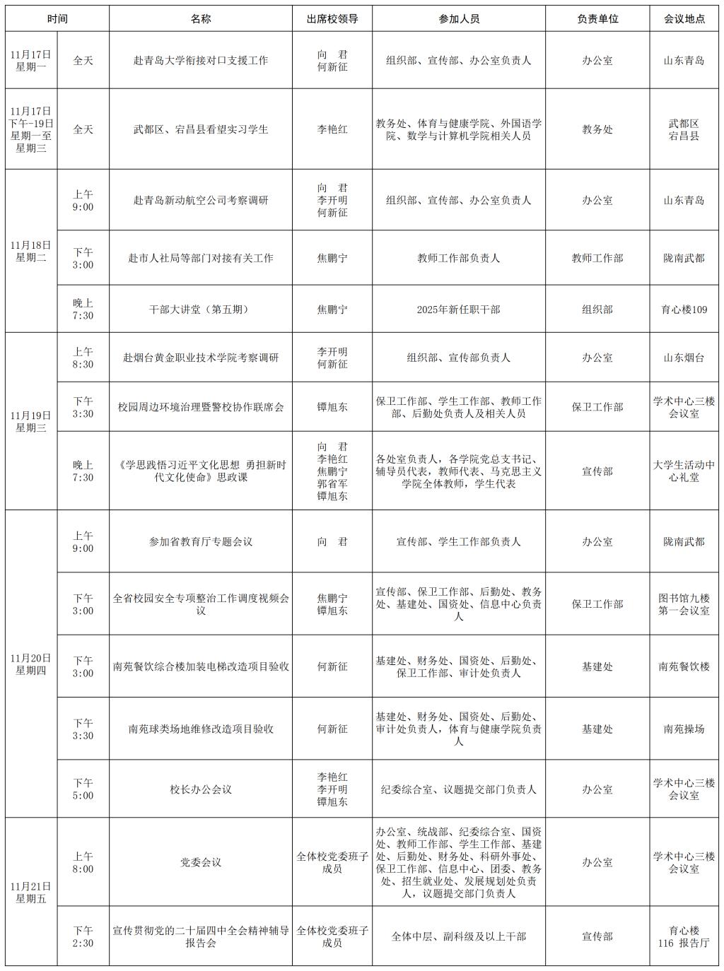 下一条:陇南师范学院2025—2026学年第一学期第十一周重要会议及校领导活动安排