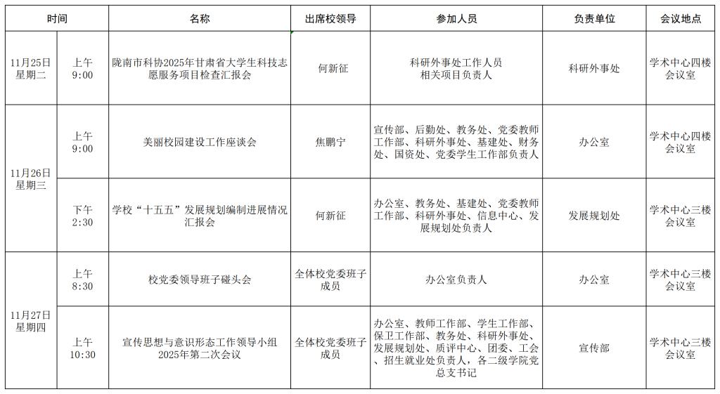 下一条:陇南师范学院2025—2026学年第一学期第十二周重要会议及校领导活动安排