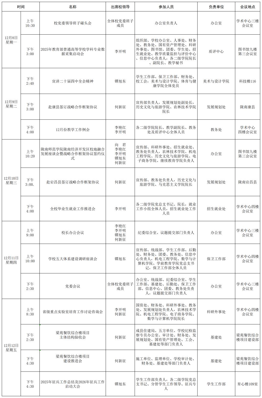 下一条:陇南师范学院2025—2026学年第一学期第十四周重要会议及校领导活动安排