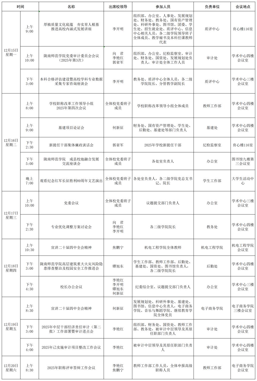 下一条:陇南师范学院2025—2026学年第一学期第十五周重要会议及校领导活动安排