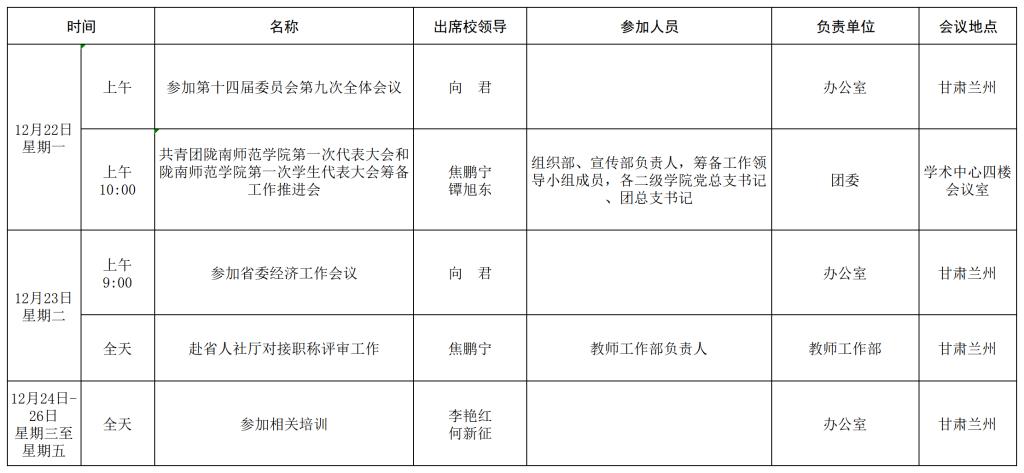 下一条:陇南师范学院2025—2026学年第一学期第十六周重要会议及校领导活动安排