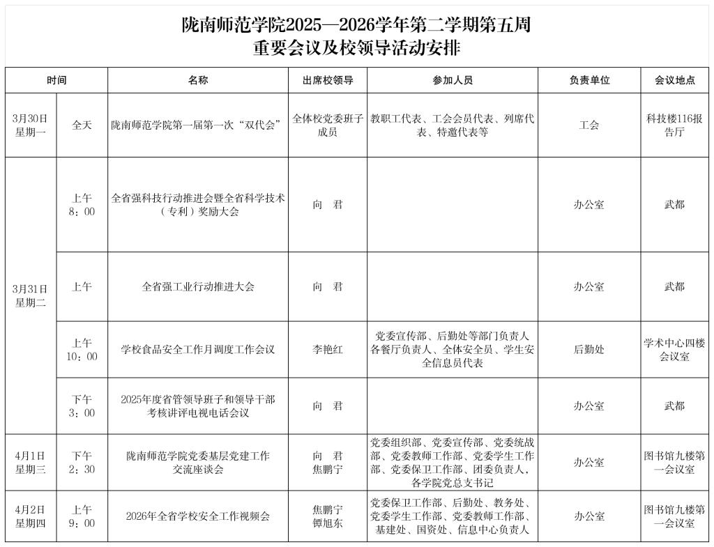 下一条:陇南师范学院2025—2026学年第二学期第四周重要会议及校领导活动安排