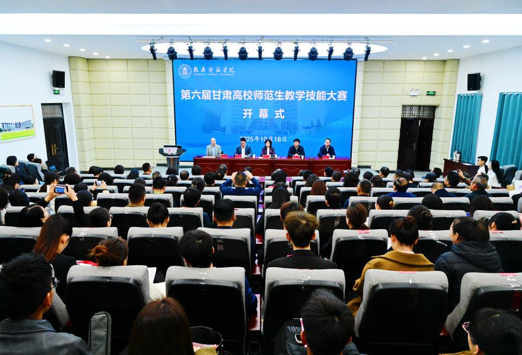 10月18日,由甘肃省教育厅主办、甘肃省新时代教师教育发展联盟协办的第六届甘肃高校师范生教学技能大赛在我校举行。我校校长李艳红,党委副书记焦鹏宁,副校长李开明、镡旭东,西北师范大学教务处副处长王卫军,比赛评委、参赛学校领导、指导老师以及参赛选手参加了大赛开幕式。