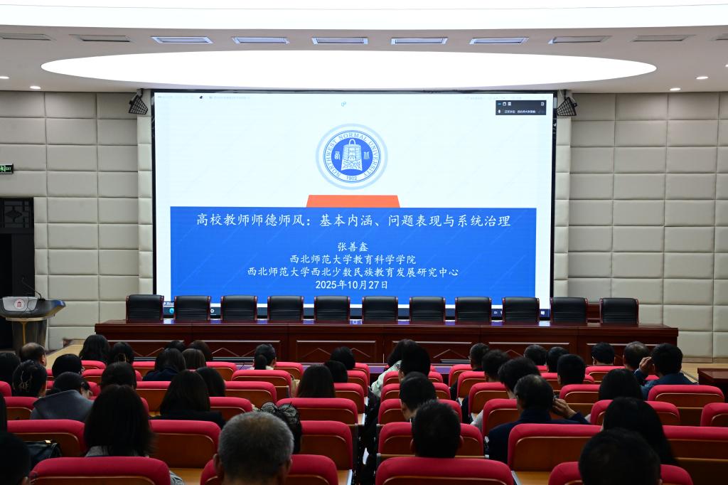 10月27日,学校举办师德师风建设专题讲座。2025年全国先进工作者、全国最美教师、兰州资源环境职业技术大学冶金工程学院党委书记马琼教授,西北师范大学教育学部副主任、博士生导师张善鑫教授应邀通过线上方式,分别作了题为“扎根陇原树样板,情系冶金铸师魂”和“高校教师师德师风:基本原理、问题表现与系统治理”的专题报告。教师代表参加了报告会。