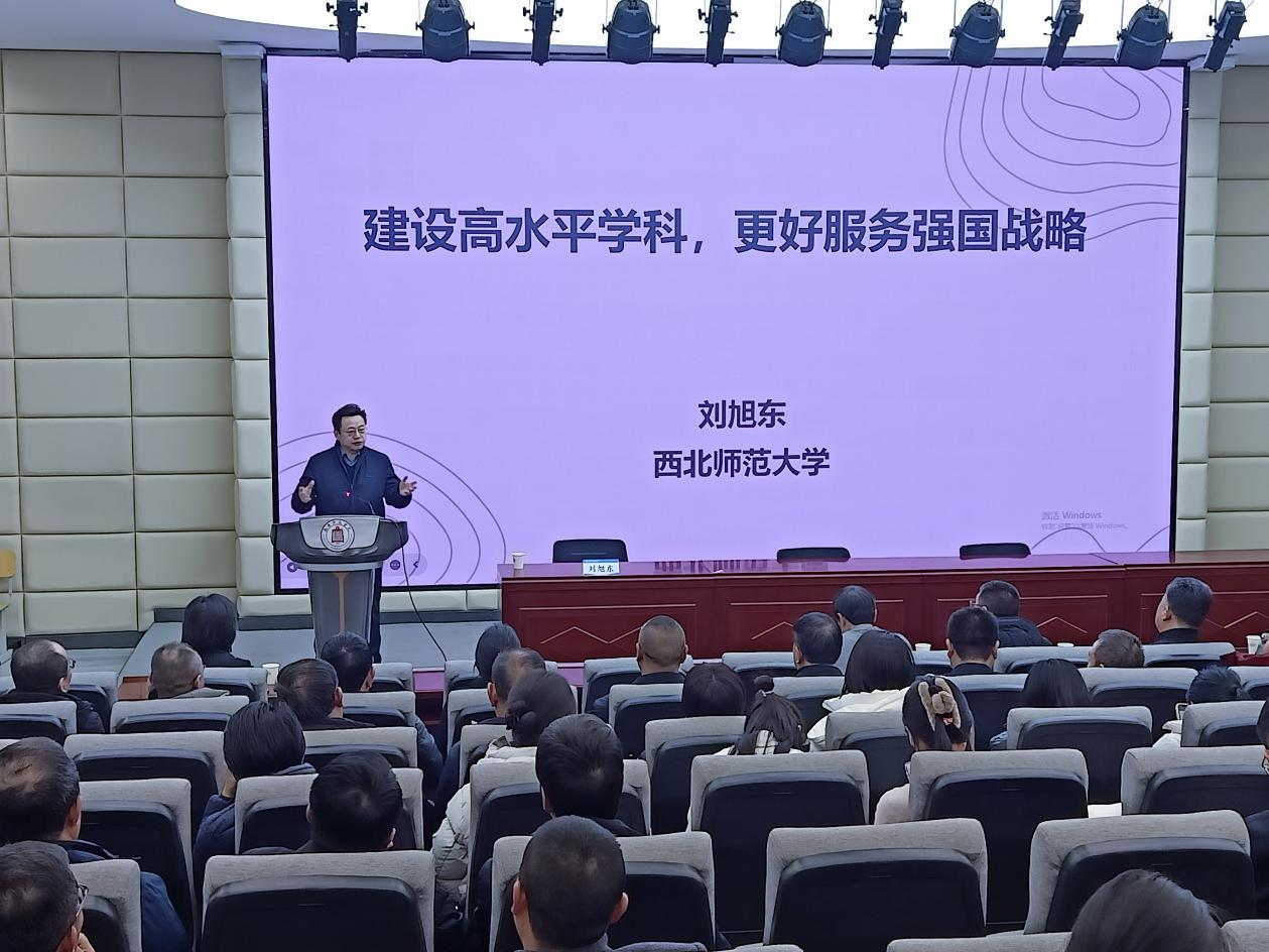 12月18日,西北师范大学教授、博士生导师刘旭东应邀来我校作了题为《建设高水平学科 更好服务强国战略》的专题学术报告。相关处室、二级学院负责人及教学科研骨干150余人聆听了报告会,报告会由校长李艳红主持。